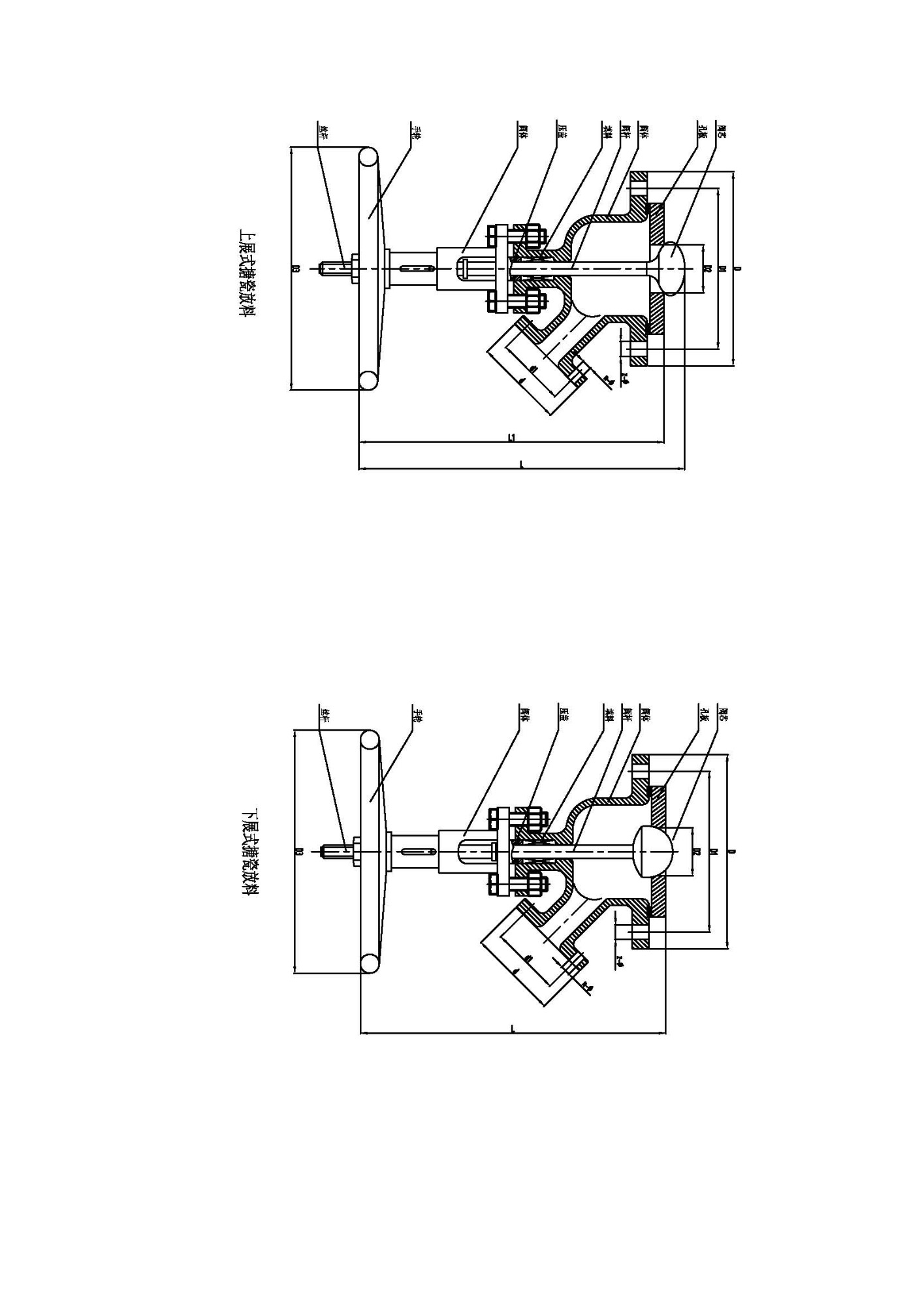 上展式搪玻璃放料閥尺寸表: