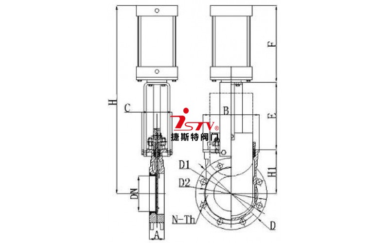 氣動(dòng)陶瓷刀閘閥 外形尺寸 :